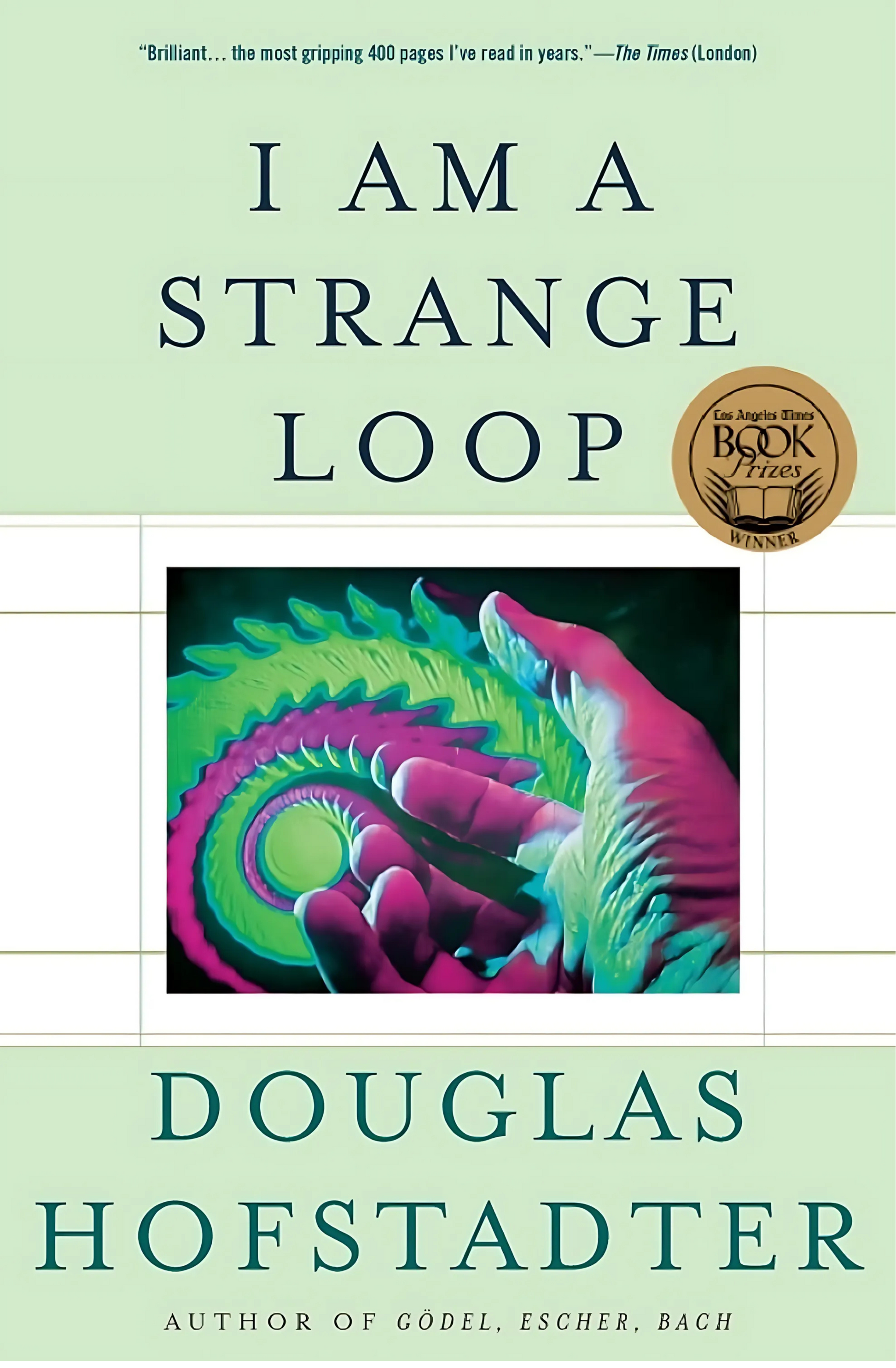 I Am a Strange Loop by Douglas Hofstadter explores the nature of consciousness and the self, proposing that the sense of "I" arises from self-referential patterns in the brain—a "strange loop" of thoughts referring back to themselves.